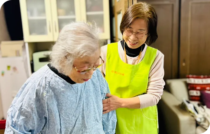 在宅でケアを必要としている高齢者のお宅に訪問し、身体介護や生活支援を通して“えがお”を届けています。