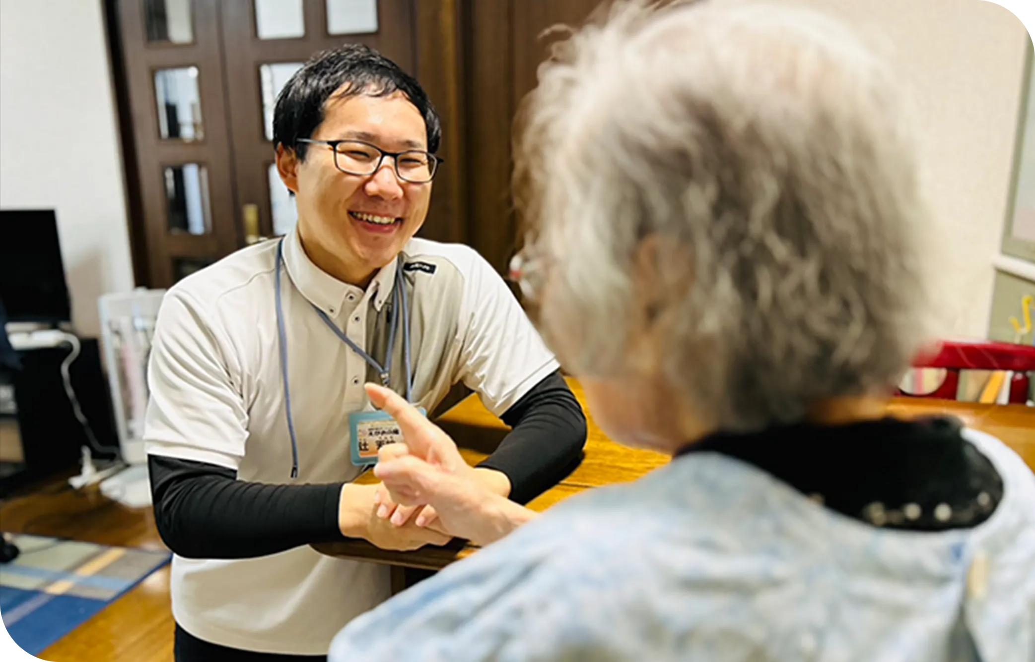 利用者さんと親身にお話ができたり触れ合え、安心して笑ってくれたりするので、その瞬間がすごく嬉しく楽しいです。